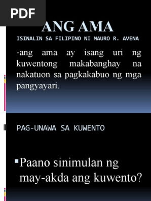 Sino ang mga pangunahing tauhan sa ang ama. View FILIPINO-MODULE_1 1docx from HIS 123 at Saint Vincents College. Please help meNonsense Report. Magbasa ng isang uri ng parabula at ilarawan ang katangian ng tauhan ng binasang kuwento.